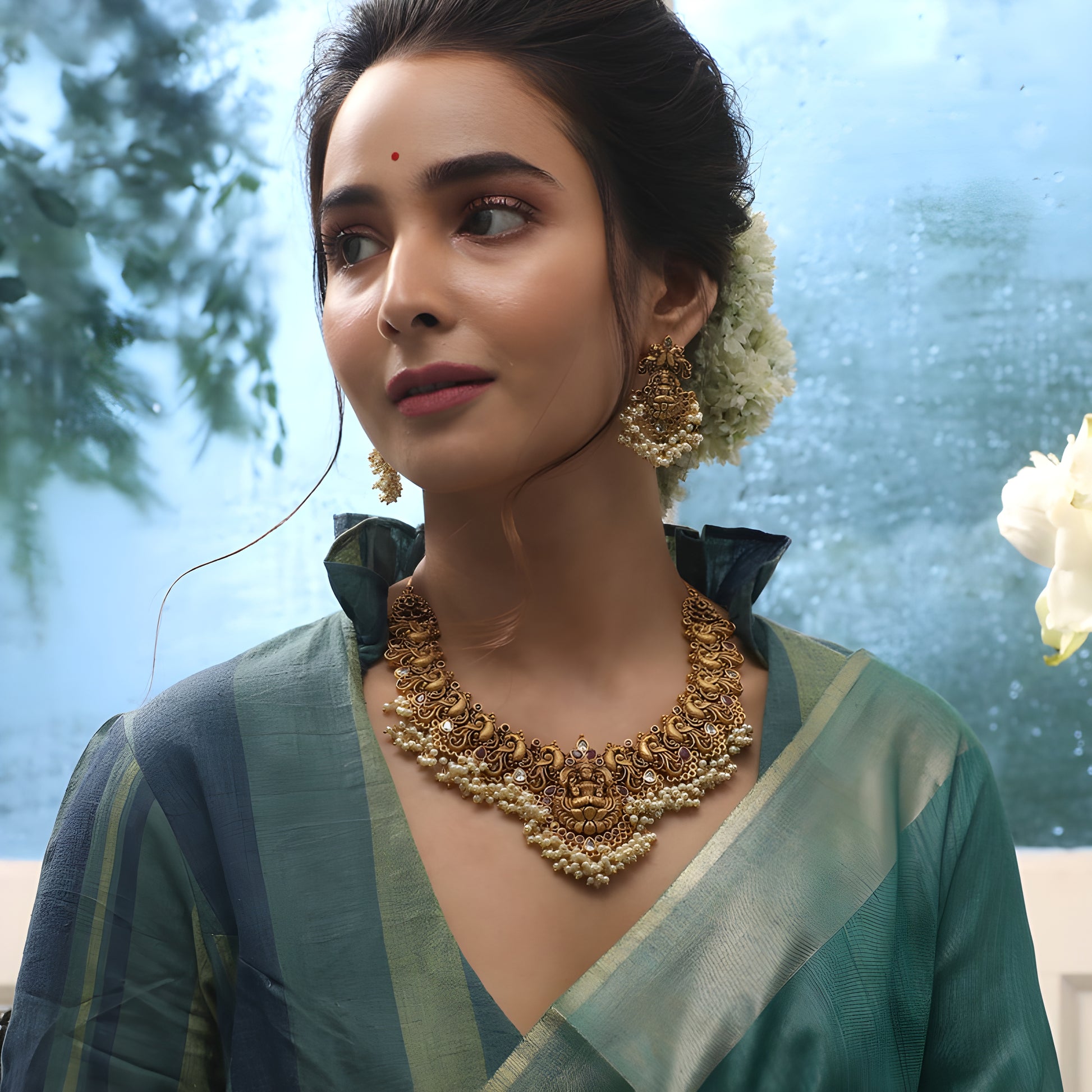 Enhance your ethnic charm with this exquisite gold-plated jewellery set designed for women who adore timeless elegance. This 2-piece set includes a beautifully crafted necklace, a pair of matching earrings,  all featuring intricate detailing and sparkling stones. Perfect for weddings, festivals, or special occasions, it effortlessly complements both traditional and contemporary outfits.